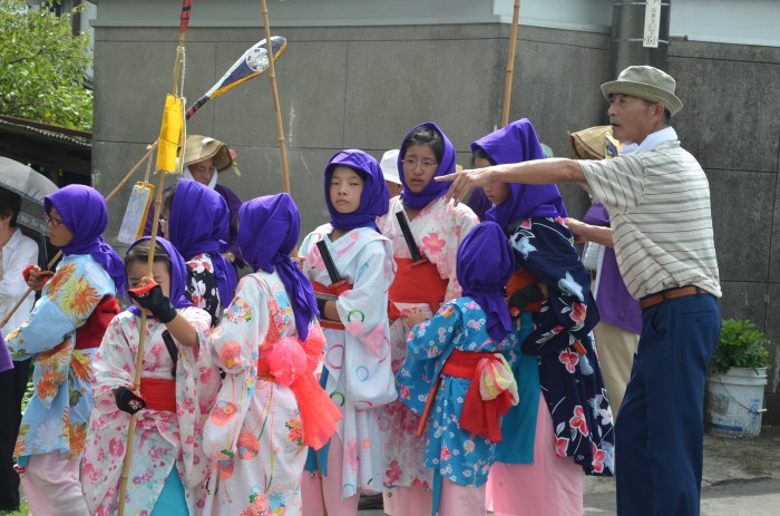 Getting ready to perform at the town shrine’s festival